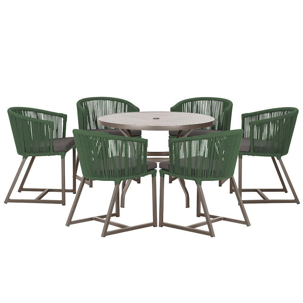 Mesa Com 6 Cadeiras Jantar Noronha Marrom E11 Trama Original Verde