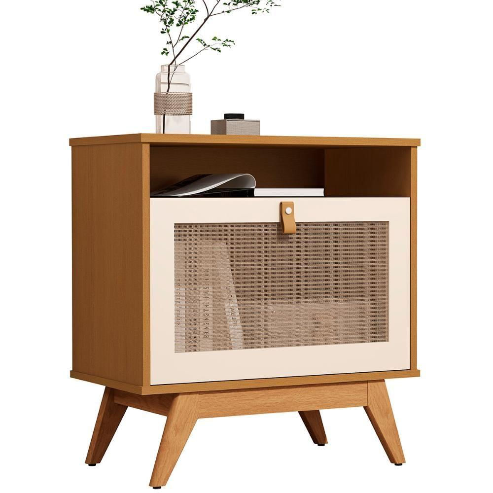 Mesa De Cabeceira Camu-camu New 1 Porta E Pés Madeira Maciça Nature Off White