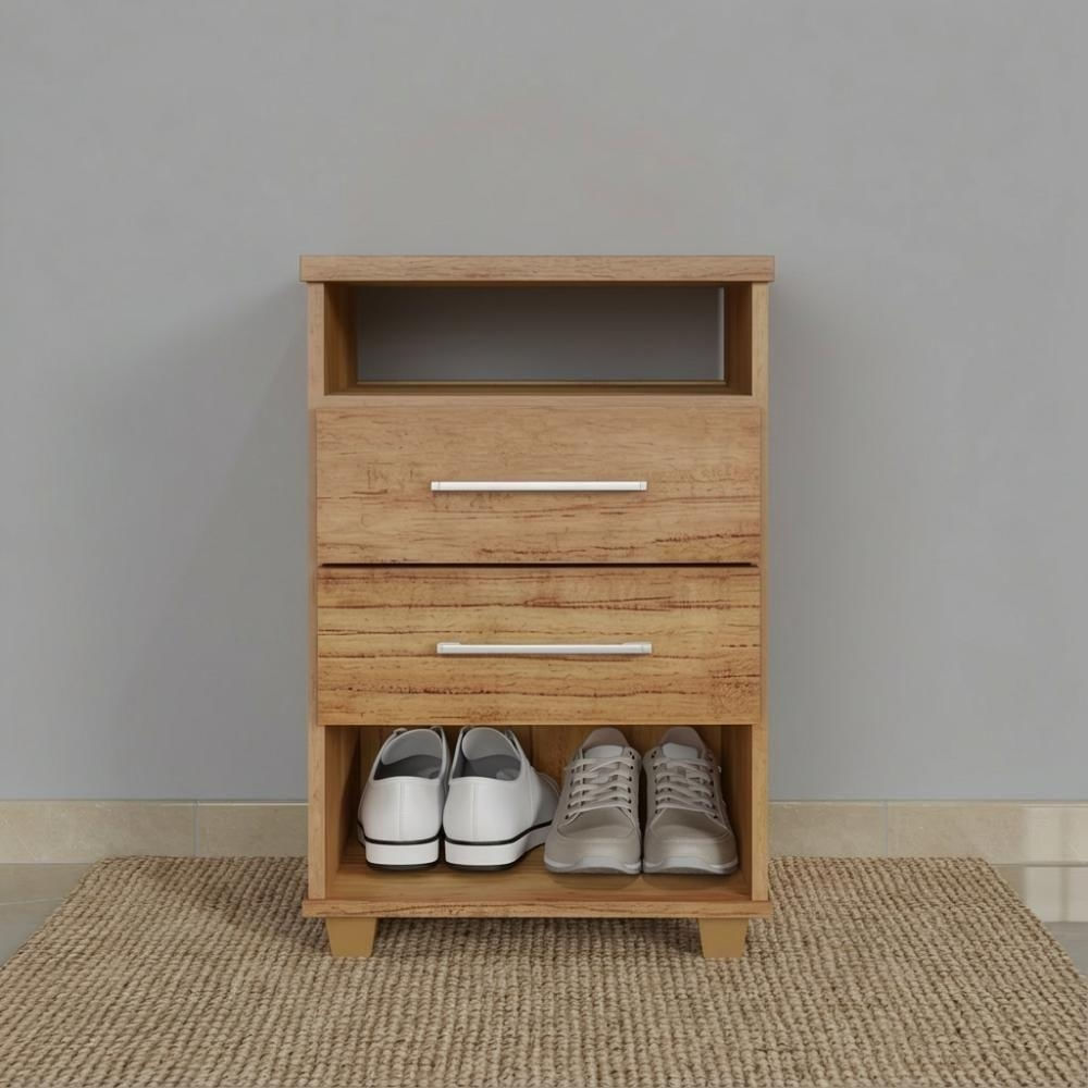Mini Cômoda com 2 Gavetas – Funcionalidade, Design e OrganizaçãoProduto também pode ser usado como Mesa de Cabeceira e Móvel de Escritório.A mini cômoda é a escolha ideal para quem busca praticidade e versatilidade na organização de ambientes compactos. Produzida em MDF e MDP, oferece resistência estrutural e durabilidade para o uso diário, sendo perfeita para quartos, closets, escritórios ou ambientes multifuncionais.Possui 2 gavetas externas com corrediças metálicas, que garantem abertura suave, maior vida útil e praticidade no manuseio. Os puxadores em alumínio conferem um visual moderno e maior resistência, enquanto os 4 pés em PVC elevam o móvel do chão, facilitando a limpeza e protegendo contra umidade.O tampo superior reforçado em 25 mm proporciona maior robustez e um amplo espaço para acomodar objetos decorativos, luminárias, livros ou itens de uso diário, tornando o móvel funcional e bem aproveitado.Características do Produto: Estrutura em MDF e MDP Espessura da estrutura: 15 mm