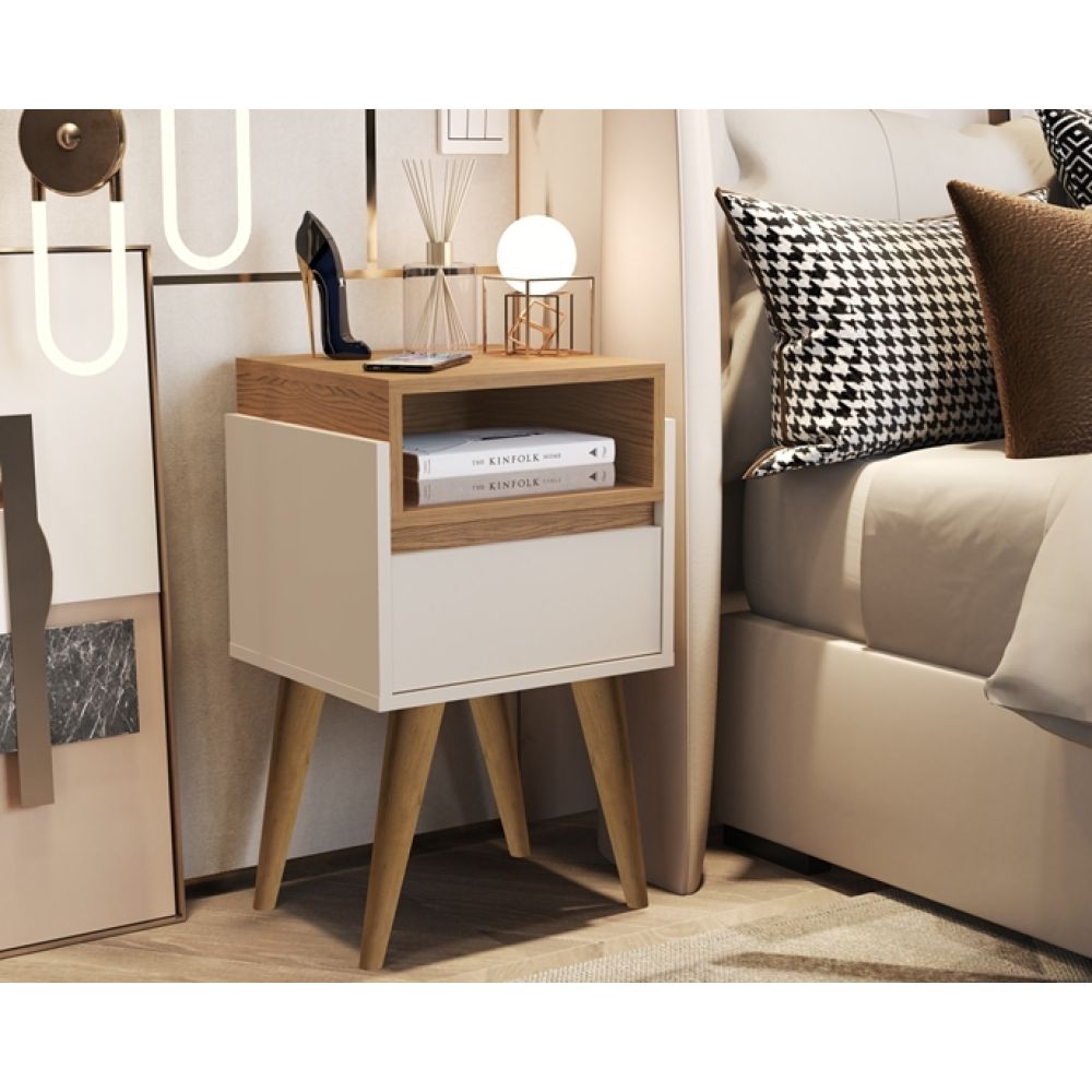 Mesa de Cabeceira Pés Palito Evora Off / Nature - Comprar Moveis em Casa