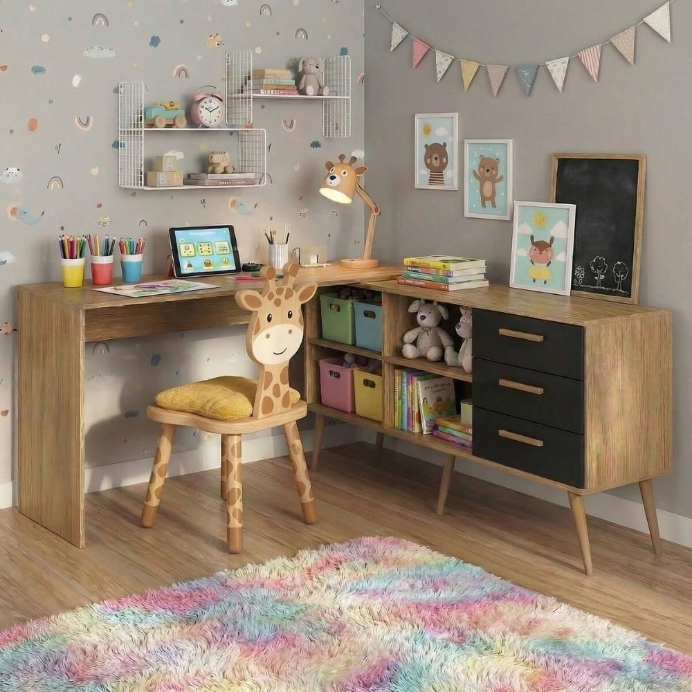 Transforme o cantinho de estudos da criança em um espaço organizado, confortável e inspirador com a Mesa de Estudos em L com 3 Gavetas Porto Multimóveis MP6047. Com design inteligente que otimiza o aproveitamento do ambiente, ela oferece uma área ampla para leitura, tarefas escolares e atividades criativas do dia a dia. Ideal para acompanhar a rotina de aprendizado, a mesa une funcionalidade, praticidade e um visual moderno, criando um ambiente perfeito para estimular a concentração, a organização e o desenvolvimento dos pequenos. Diferenciais: - 3 anos de garantia contra defeitos de fabricação e material. - Produzida em madeira de reflorestamento (MDP 15mm): garante resistência e durabilidade. - Acabamento acetinado (cerca de 20% de brilho): proporciona facilidade na limpeza do móvel. - 4 opções de montagem: formato reto ou em L (canto), com a mesa à esquerda ou à direita do balcão. - 3 gavetas com corrediças metálicas: oferecem abertura suave e praticidade na organização dos itens. - 4 nichos externos ideais para colocar livros, objetos decorativos e brinquedos. - Tampo espaçoso para a criança estudar, desenhar e se divertir. - Pés retrô em polipropileno: agregam estabilidade, charme e personalidade ao móvel. - Puxadores em ABS: resistentes e modernos.