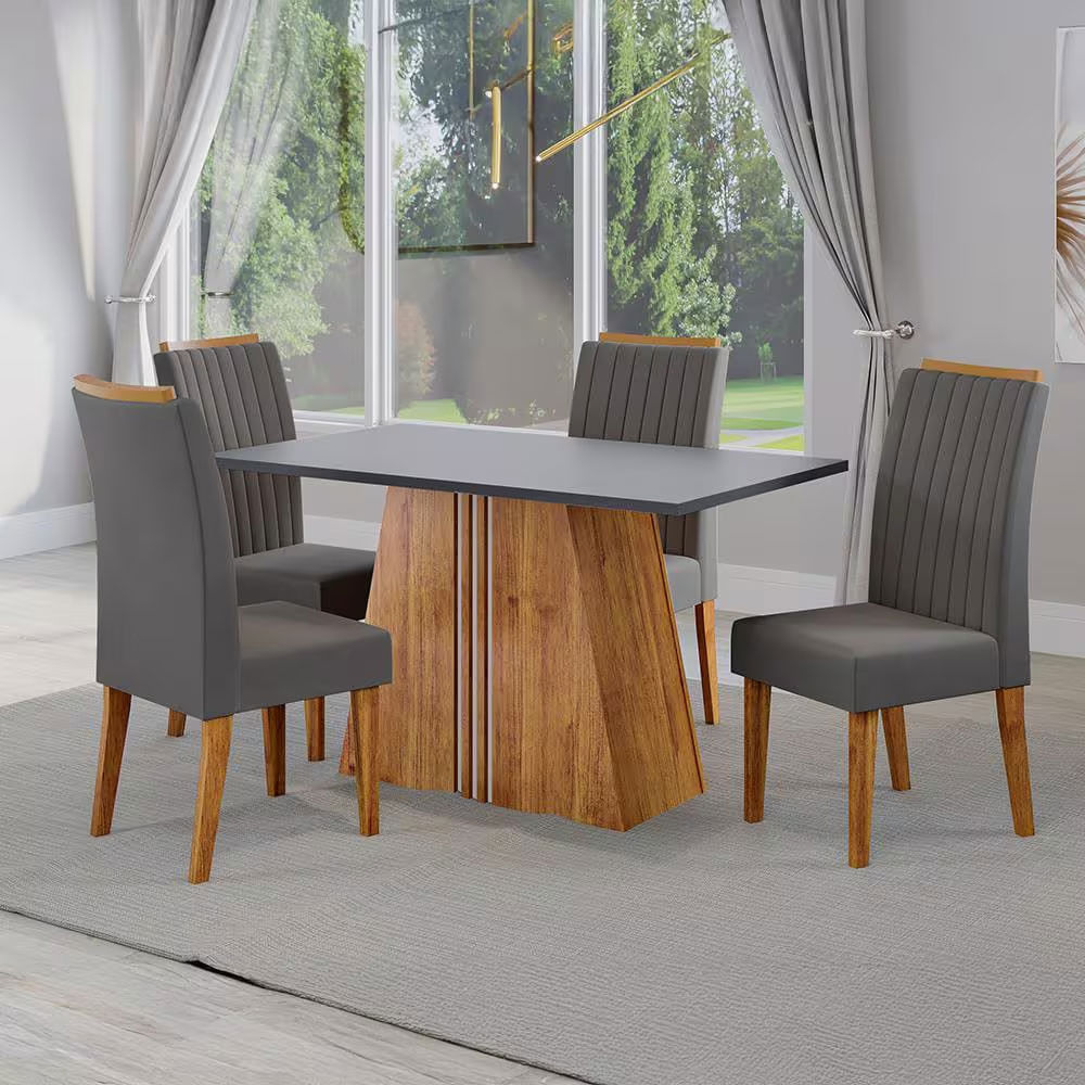 Mesa de Jantar 04 Cadeiras Lumina Estofada Veludo Viero Grafite