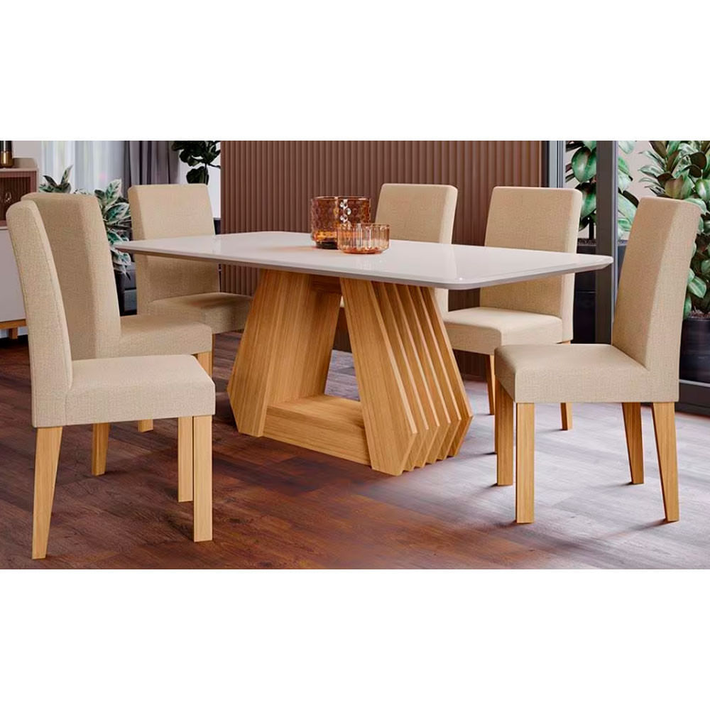 Mesa de Jantar Alessia com 6 Cadeiras Cimol Móveis Bege com Marrom