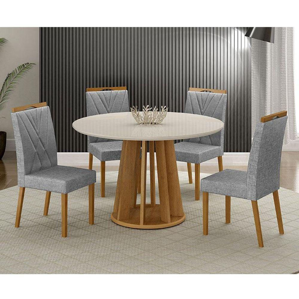 Mesa De Jantar Ambiente Rose Cinamomo Off White Com 4 Cadeiras Lara Linho Prata - Valdemóveis