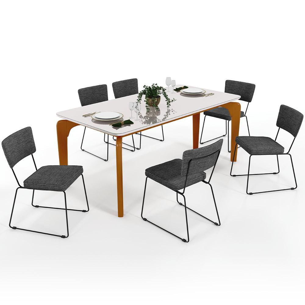 Percebemos hoje mais do que nunca o quanto os momentos com a família e os amigos são imprescindíveis, as refeições os tornam memoráveis e são uma ótima maneira de reunir a todos e colecionar lembranças especiais. A Mesa De Jantar Capri 160cm Off White Nature E 6 Cadeiras Allana B05 Linho Cinza Escuro - Lyam Decor vem justamente com essa proposta, seu tampo com bordas suavemente arredondadas transmite suavidade e contrasta maravilhosamente com as estruturas de aço com pegada industrial.