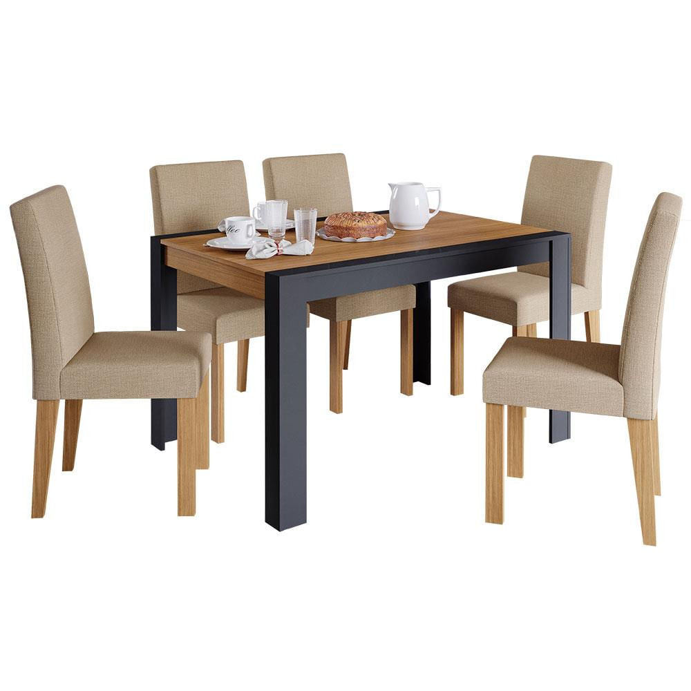 Mesa de Jantar Cimol Grace com 6 Cadeiras Maia Chumbo/Nature Nature/Gengibre