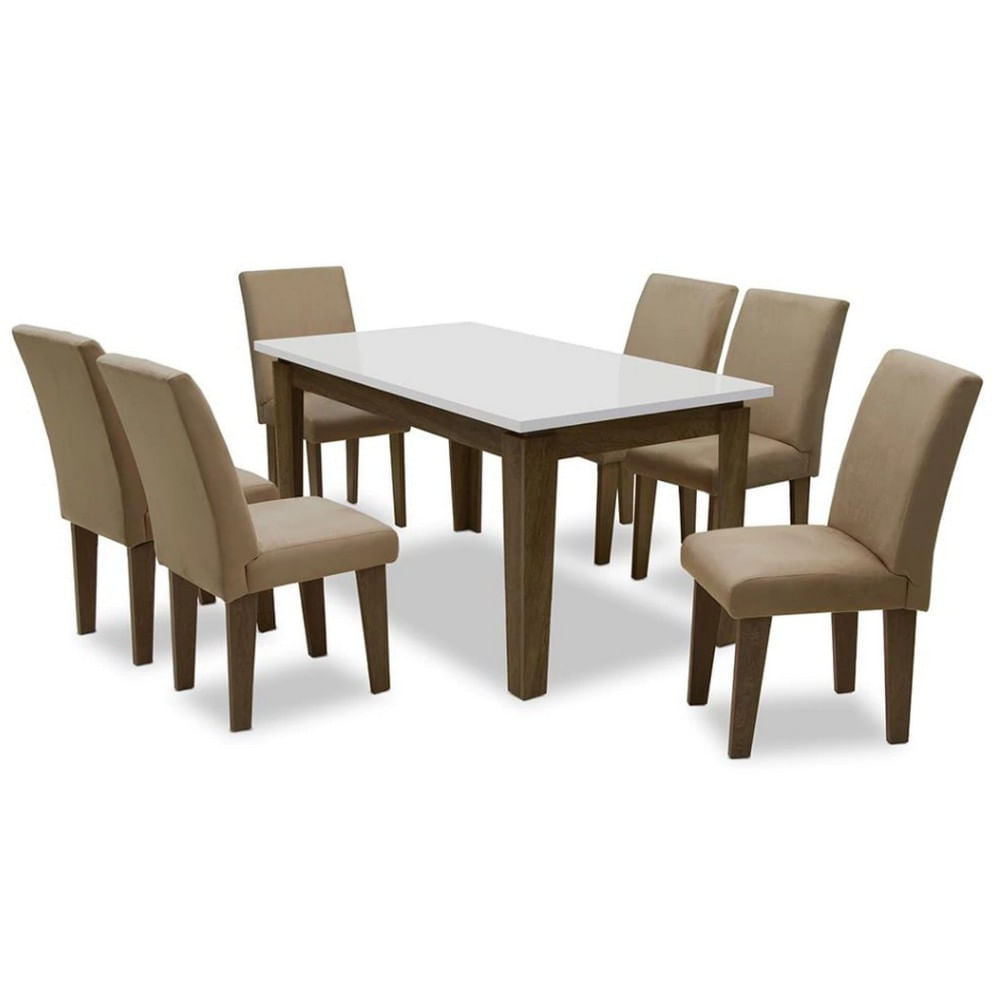 Mesa de Jantar Dobuê Atlanta Com 6 Cadeiras Mascavo com Castor e Branco Off