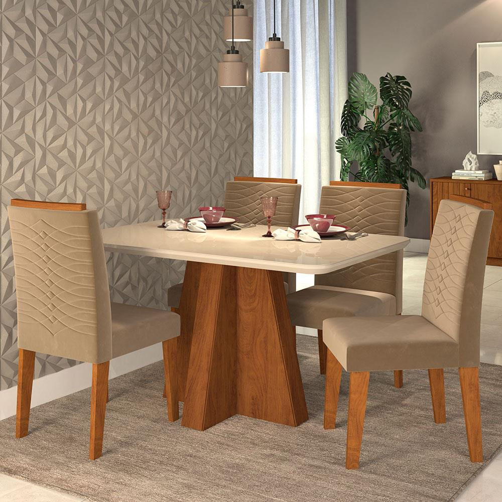 Mesa de Jantar Maitê com 4 Cadeiras Clarice Cimol Savana com Off White e Savana com Joli