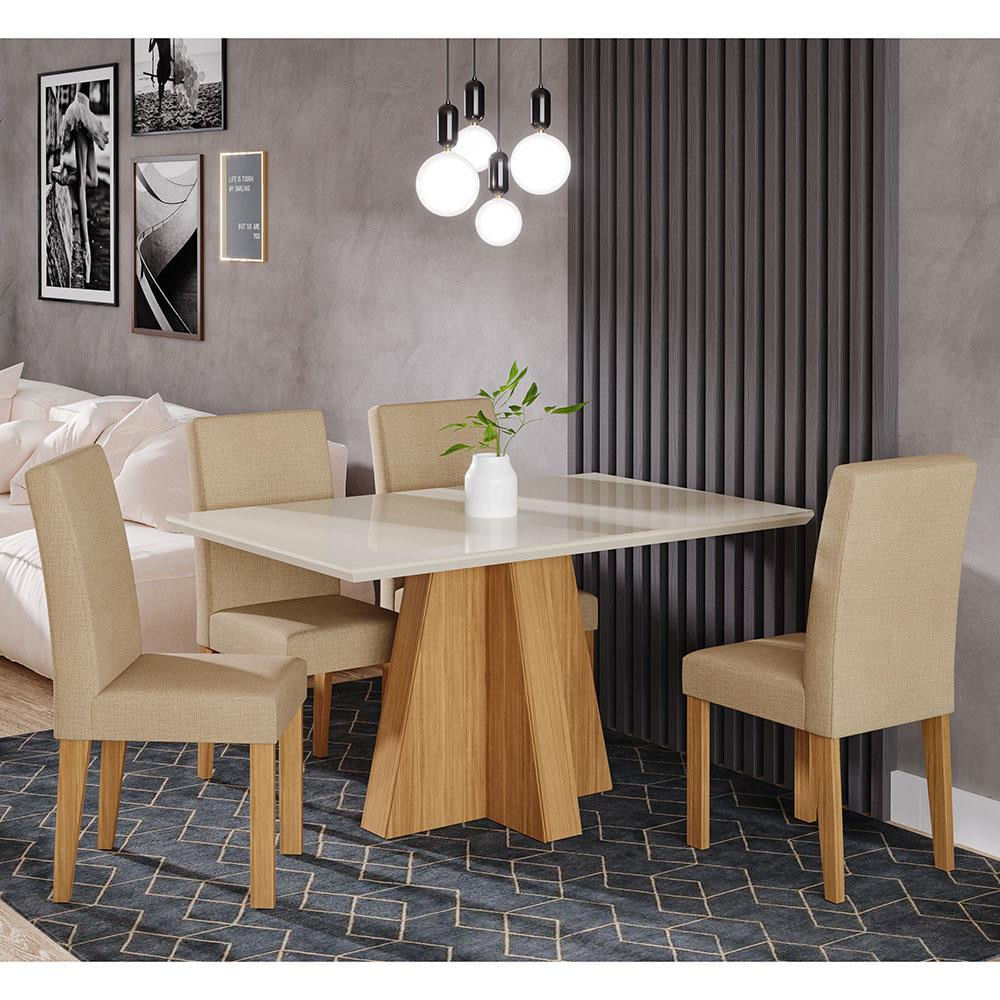Mesa de Jantar Patricia com 4 Cadeiras Maia Cimol Nature e Off White e Nature com Gengibre