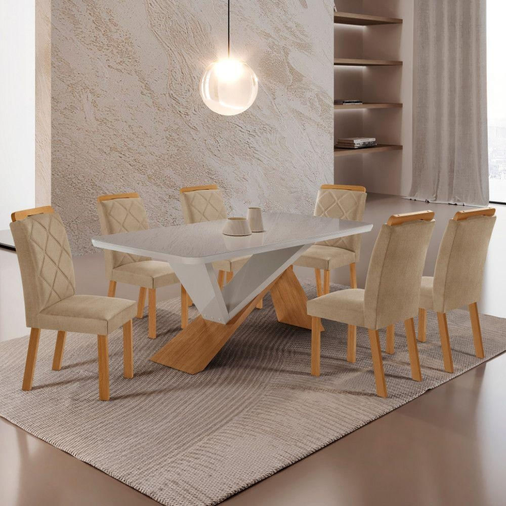 Mesa De Jantar Yasmin 180 Tampo Com Vidro 6 Cadeiras Melissa Turim 07/nat/off/serig. Off