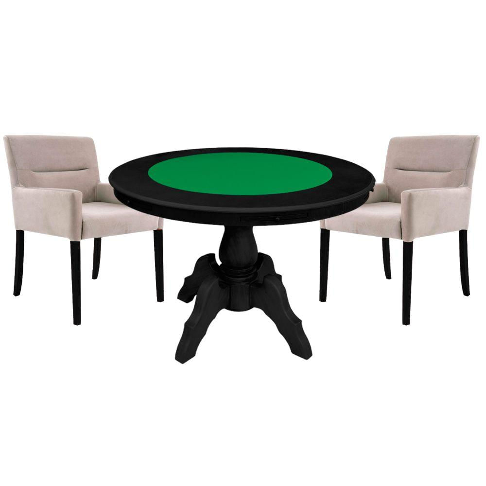 Mesa de Jogos Carteado Redonda Montreal Tampo Reversível Preto 2 Cadeiras Vicenza Nude - Gran Belo