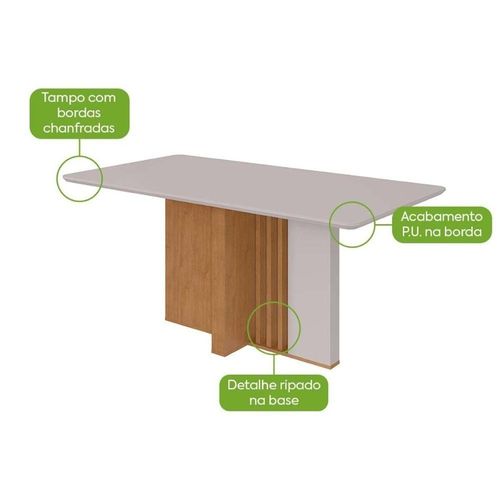 Mesa de Sala Jantar Astrid + Tampo Madeirado Vidro 160x80cm Amendoa/Off White - Lopas Marca: Lopas