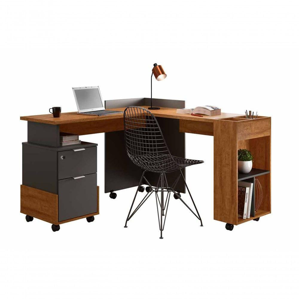 Mesa Em L Para Escritório Alessa Amêndoa Com Chumbo - Lukaliam Móveis