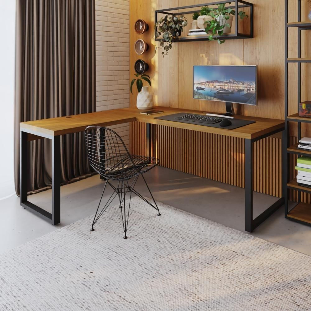 Mesa Em L Presidente 190x160x75cm Yon - Acácia Mel/est.preta Acácia Mel/est.preta