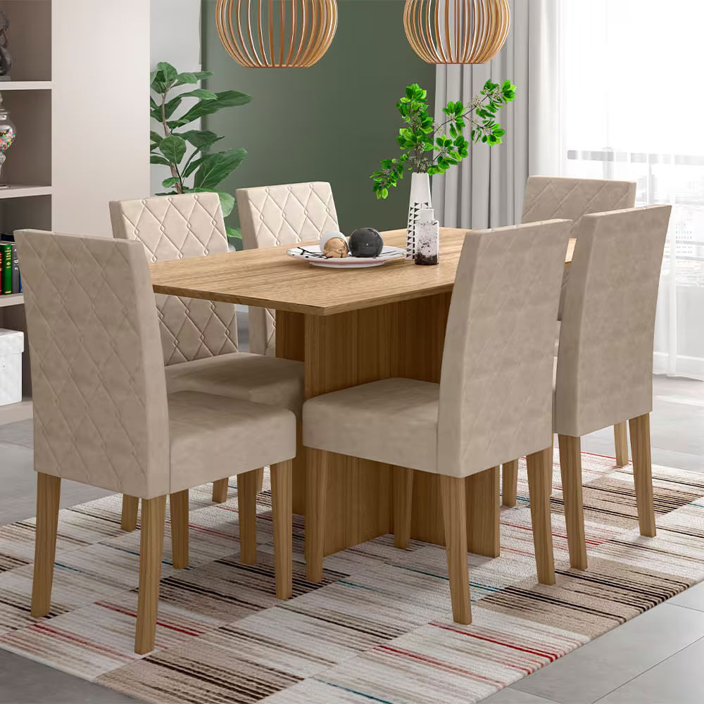 Mesa Jantar Helo 06 Cadeiras Revestidas Suede 160cm Poliman Bege