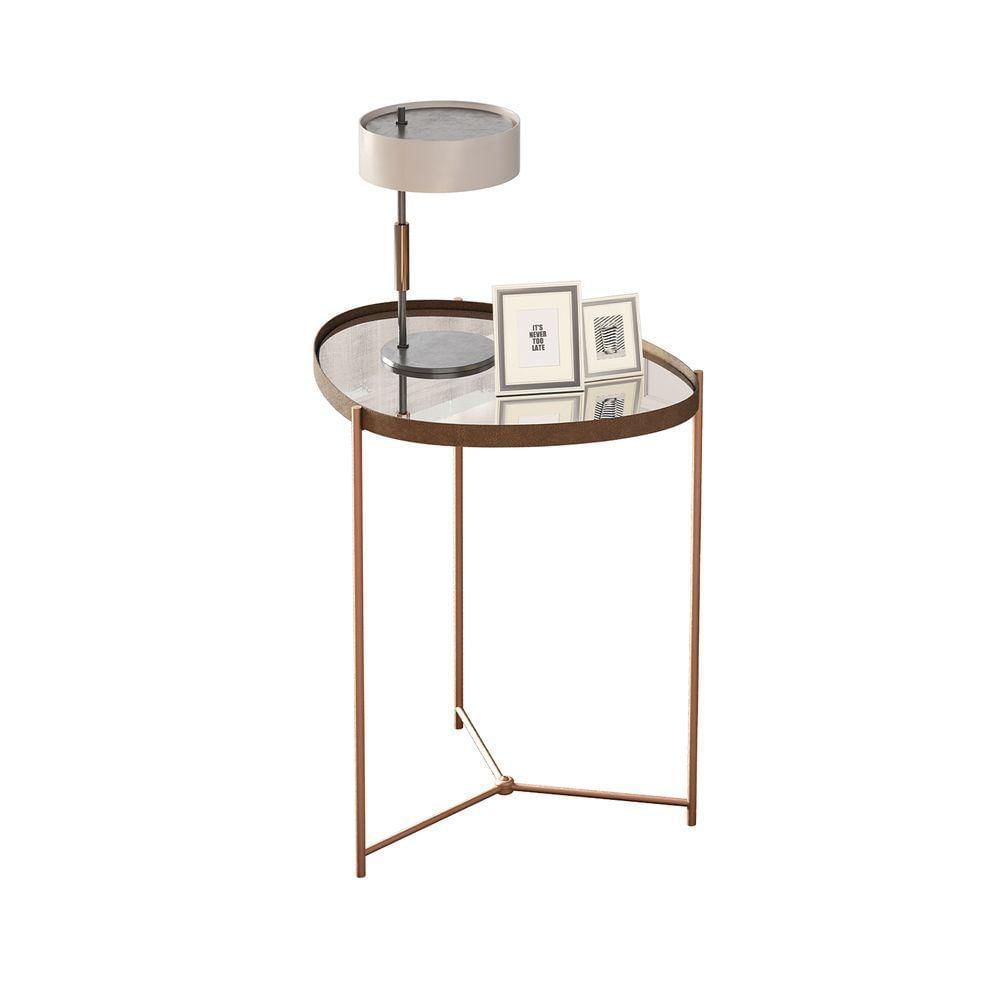 Mesa Lateral Organica Alamanda Castanho Pe Bronze - Moveis Jb