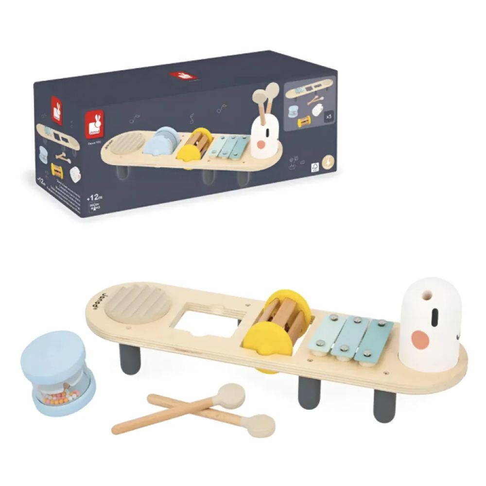 Mesa Lagarta Musical Sweet Cocoon – Brinquedo Educativo de Madeira com Instrumentos Musicais para Bebês