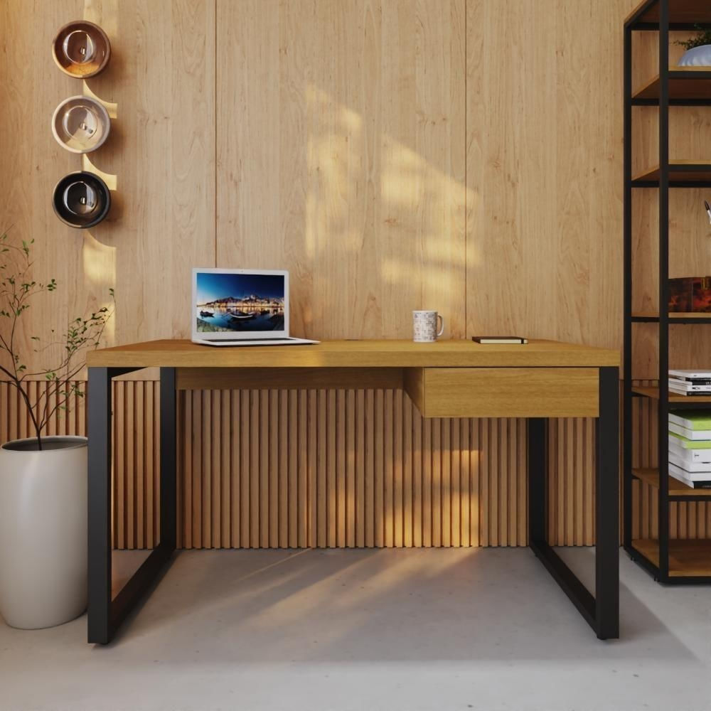 Mesa Operacional C/01gav. 135x70x75cm Yon - Acácia Mel/est.preta Acácia Mel/est.preta