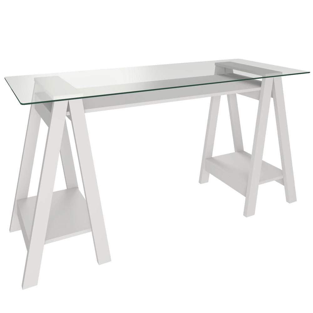 Mesa Para Escritório Escrivaninha Home Office Tampo De Vidro 150x75 Cristal A02 Branco - Lyam Decor