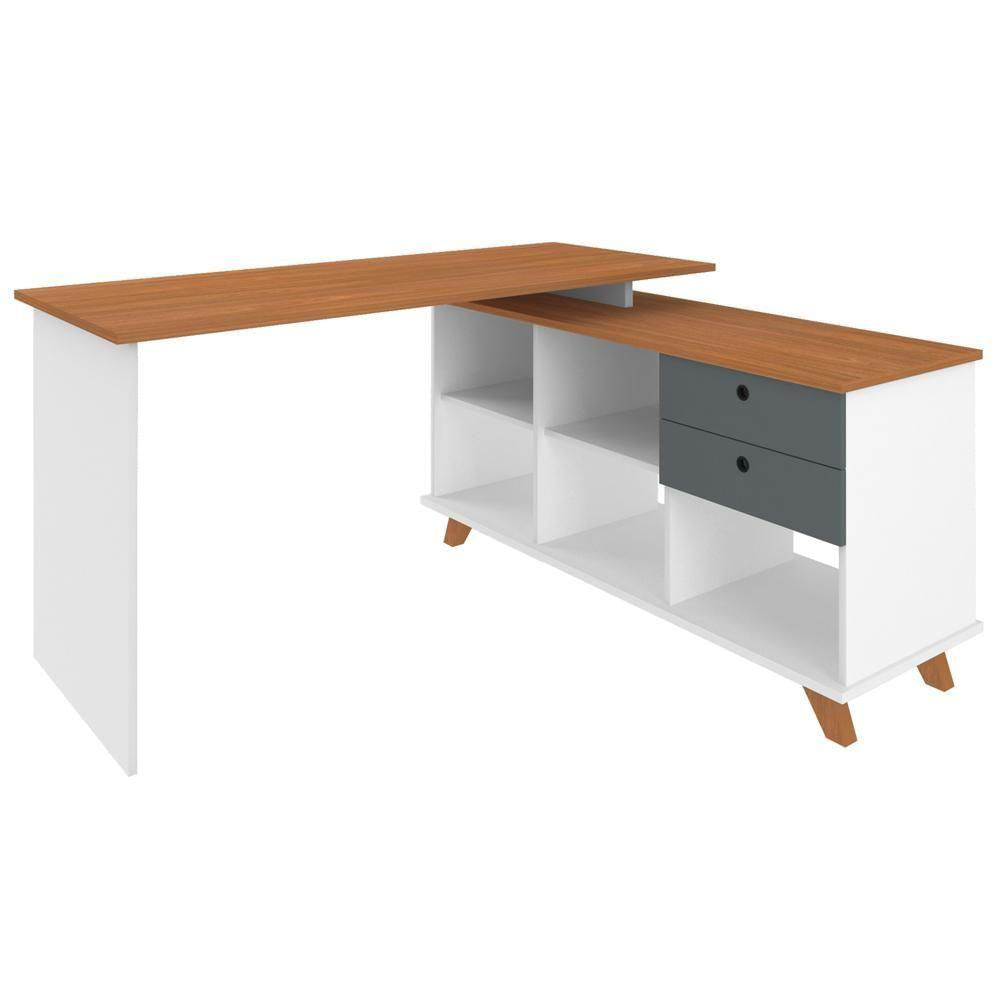 Mesa Para Escritório Home Office Escrivaninha Gold A02 Freijó Grafito Branco - Lyam Decor