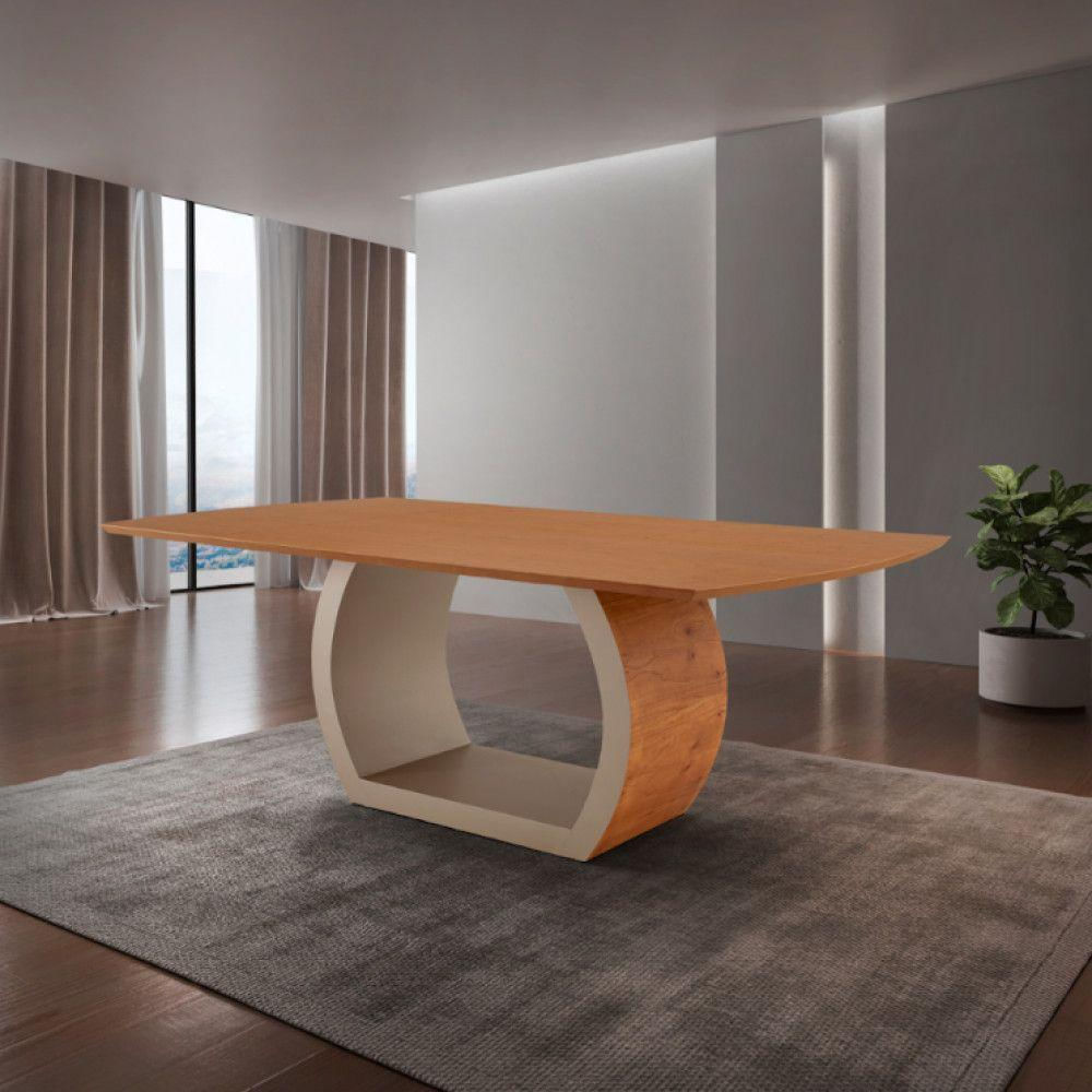 Mesa para Sala de Jantar Ellis 180cm Madeira Moderna Mobilia A mesa de jantar Ellis e uma obra-prima de design moderno, uma peca que captura instantaneamente a atencao com sua presenca imponente. Feita com madeira de alta qualidade, ela e mais do que um simples movel; e uma expressao de estilo e sofisticacao. Seu design arrojado e contemporaneo e evidente desde o primeiro olhar, destacando-se por uma base com detalhes curvados que conferem um charme unico e uma elegancia inigualavel a qualquer espaco. O que torna a mesa Ellis verdadeiramente especial sao seus detalhes meticulosamente trabalhados. Cada curva da base e cuidadosamente elaborada para proporcionar uma sensacao de fluidez e movimento, criando uma peca que e ao mesmo tempo visualmente deslumbrante e funcional. Seja em uma sala de jantar moderna ou em um ambiente mais classico, a mesa Ellis se destaca como o ponto focal perfeito, adicionando um toque de estilo e personalidade ao ambiente. Sua qualidade excepcional garante durabilidade e resistencia, enquanto seu design inovador cria uma atmosfera acolhedora e convidativa para momentos de convivio e celebracao.