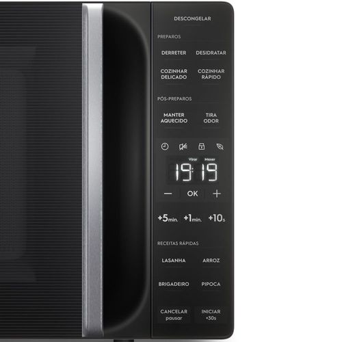 - Função Mudo: configure seu micro-ondas para não emitir som durante o uso e mantenha o ambiente silencioso sempre que quiser;