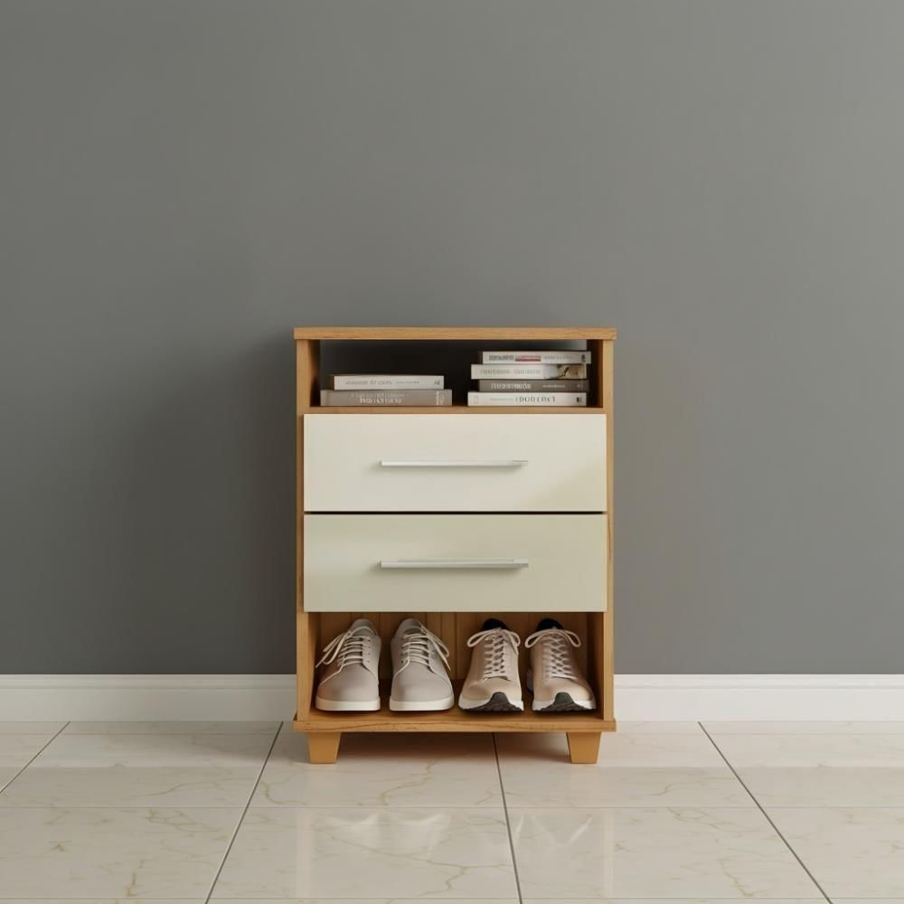 Mini Cômoda com 2 Gavetas – Funcionalidade, Design e OrganizaçãoProduto também pode ser usado como Mesa de Cabeceira e Móvel de Escritório.A mini cômoda é a escolha ideal para quem busca praticidade e versatilidade na organização de ambientes compactos. Produzida em MDF e MDP, oferece resistência estrutural e durabilidade para o uso diário, sendo perfeita para quartos, closets, escritórios ou ambientes multifuncionais.Possui 2 gavetas externas com corrediças metálicas, que garantem abertura suave, maior vida útil e praticidade no manuseio. Os puxadores em alumínio conferem um visual moderno e maior resistência, enquanto os 4 pés em PVC elevam o móvel do chão, facilitando a limpeza e protegendo contra umidade.O tampo superior reforçado em 25 mm proporciona maior robustez e um amplo espaço para acomodar objetos decorativos, luminárias, livros ou itens de uso diário, tornando o móvel funcional e bem aproveitado.Características do Produto:Estrutura em MDF e MDP Espessura da estrutura: 15 mm