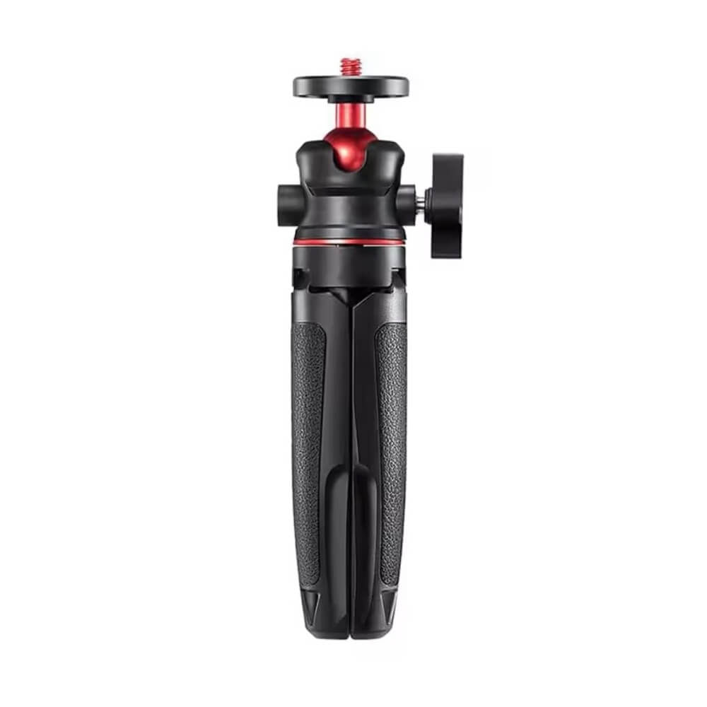 A estrutura deste mini tripé é feita de plástico ABS e alumínio com alta resistência, qualidade e durabilidade, além de possuir design leve e compacto, fácil para armazenar e transportar dentro de mochilas e estojos. Na parte superior há um parafuso com roscas de 1/4 polegadas para encaixar em diversos equipamentos e acessórios, e cabeça giratória em 360º, que permite ajuste e travamento em diversas posições. Acompanha um adaptador para câmeras GoPro e similares, além de um suporte de celular, para smartphones com largura de tela de 5,5 a 8,5cm.