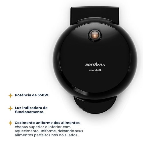 Mini Waffle Maker Britânia 550W Chapas Antiaderentes BWM01A 220V