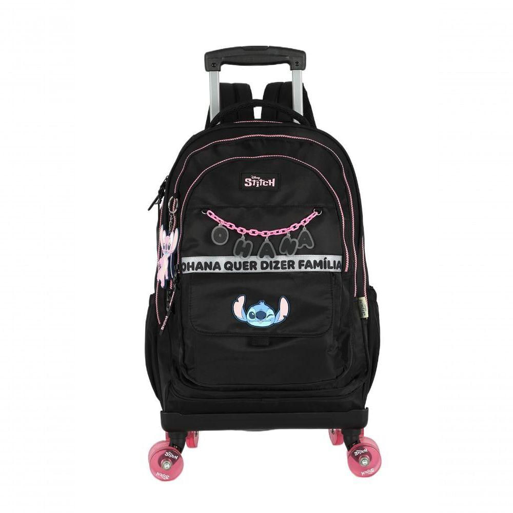 A coleção Stitch apresenta modelos exclusivos, combinando design funcional, conforto e estilo para o dia a dia.O modelo MC50082SC possui dimensões de 48 x 34 x 22 cm, capacidade aproximada de 28 litros, sendo classificada como mochila média e compatível com 18 polegadas. Conta com base emborrachada com quatro rodinhas duplas de skate com giro 360°, que facilitam o transporte em qualquer superfície.Confeccionada em náilon resistente, possui compartimento amplo com espaço para notebook, bolsos frontais e chaveiro com corrente personalizada da marca, reunindo vários detalhes em um só produto e design único.Observação: para saber se o notebook cabe, orientamos medir o mesmo e comparar com as medidas da mochila, sempre considerando um tamanho menor para segurança.Dicas de uso: ideal para estudantes e profissionais que precisam carregar material ou equipamentos de forma organizada. Também pode ser utilizada em passeios ou atividades do dia a dia.Dicas de limpeza: limpar com pano macio levemente umedecido em água e sabão neutro. Evite produtos químicos, escovas de cerdas duras e contato prolongado com umidade para preservar a durabilidade do material. Largura real: 34 | Tempo de Garantia: 6 | Garantia: 6 meses | Origem: Importados | Peso real: 1 | Coleção: Stitch | Material: Poliester | Modelo: MC50082SC | Tipo de Mochila: Escolar | Gênero: Feminino | Altura real: 48 | Comprimento real: 22 Cor: Preto