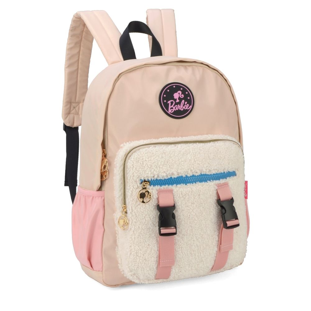 Mochila juvenil Barbie conta com detalhe em pelúcia, amplo compartimento principal, bolsos frontais e laterais. - Alça de mão e alça de costas acolchoadas; - Puxadores personalizados; Produto original, licenciado.