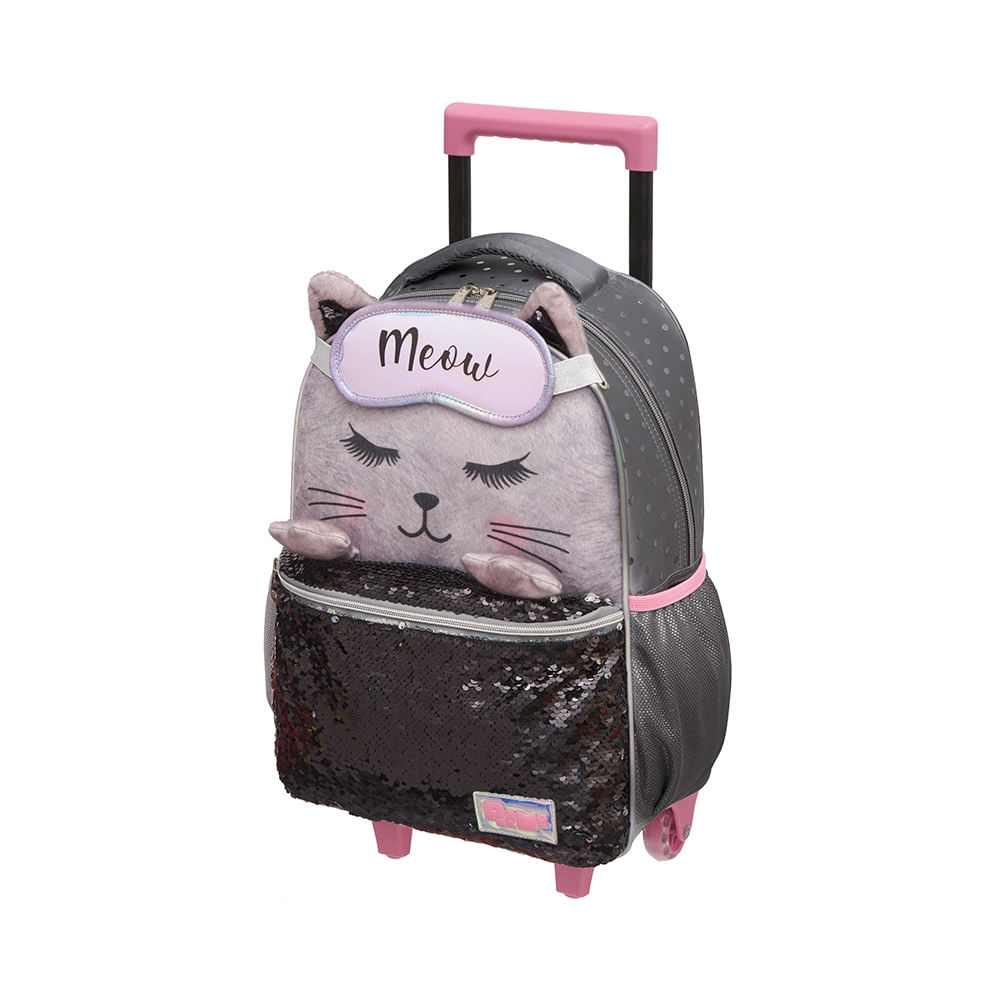 Mochilete Infantil Pacific Pet Gatinho com Puxador Personalizado Metalizado Cromado