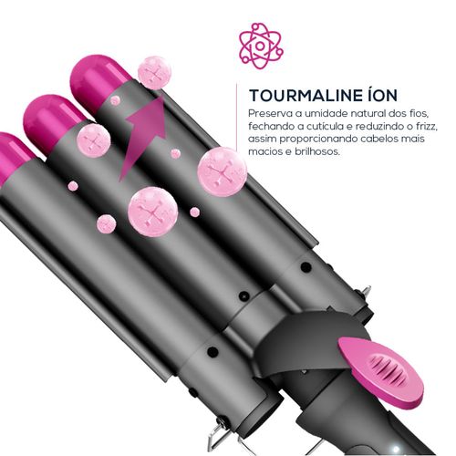 Tubo modelador com revestimento em cerâmica Bivolt automático Aquecimento até 230 graus em PTC Anel de pendurar Pontas frias Ondas com 32mm