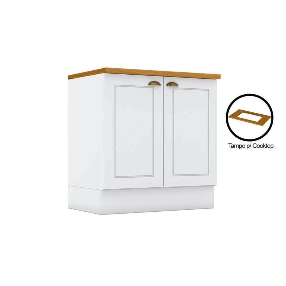 Módulo Cozinha Americana Balcão Com Tampo Para Cooktop Com 2 Portas 80cm Branco2 Aéreos + 1 Balcão + 1 Complemento