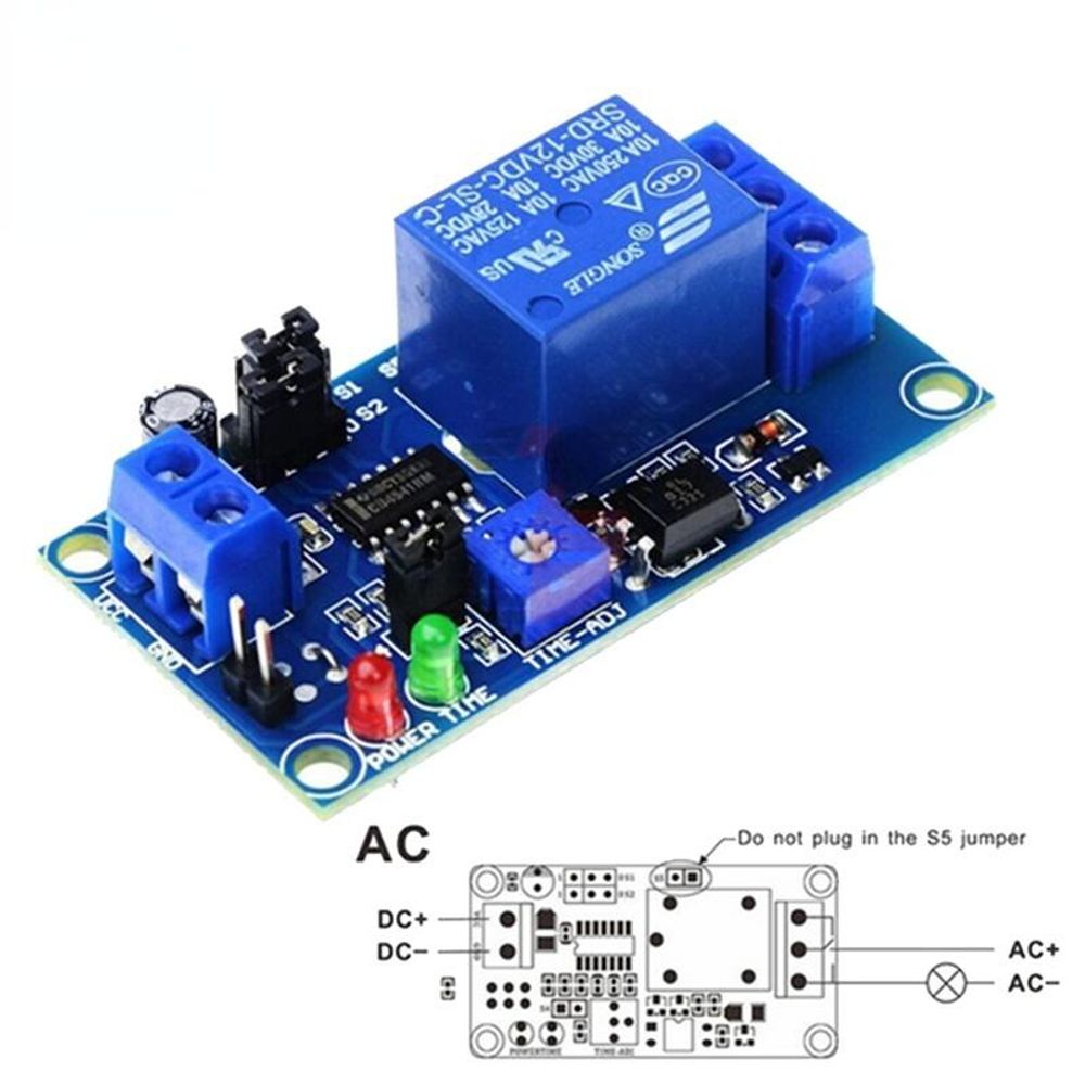 Com 8 faixas de tempo selecionáveis, o menor é 0,1s e o maior até 1 hora. Proteção contra inversão de polaridade com diodo, melhor proteção para o módulo. Pode ser conectado a uma carga de alta corrente (250V AC 10A ou 30V DC 10A). Com potenciômetro de ajuste de atraso, girar no sentido horário aumenta o tempo.