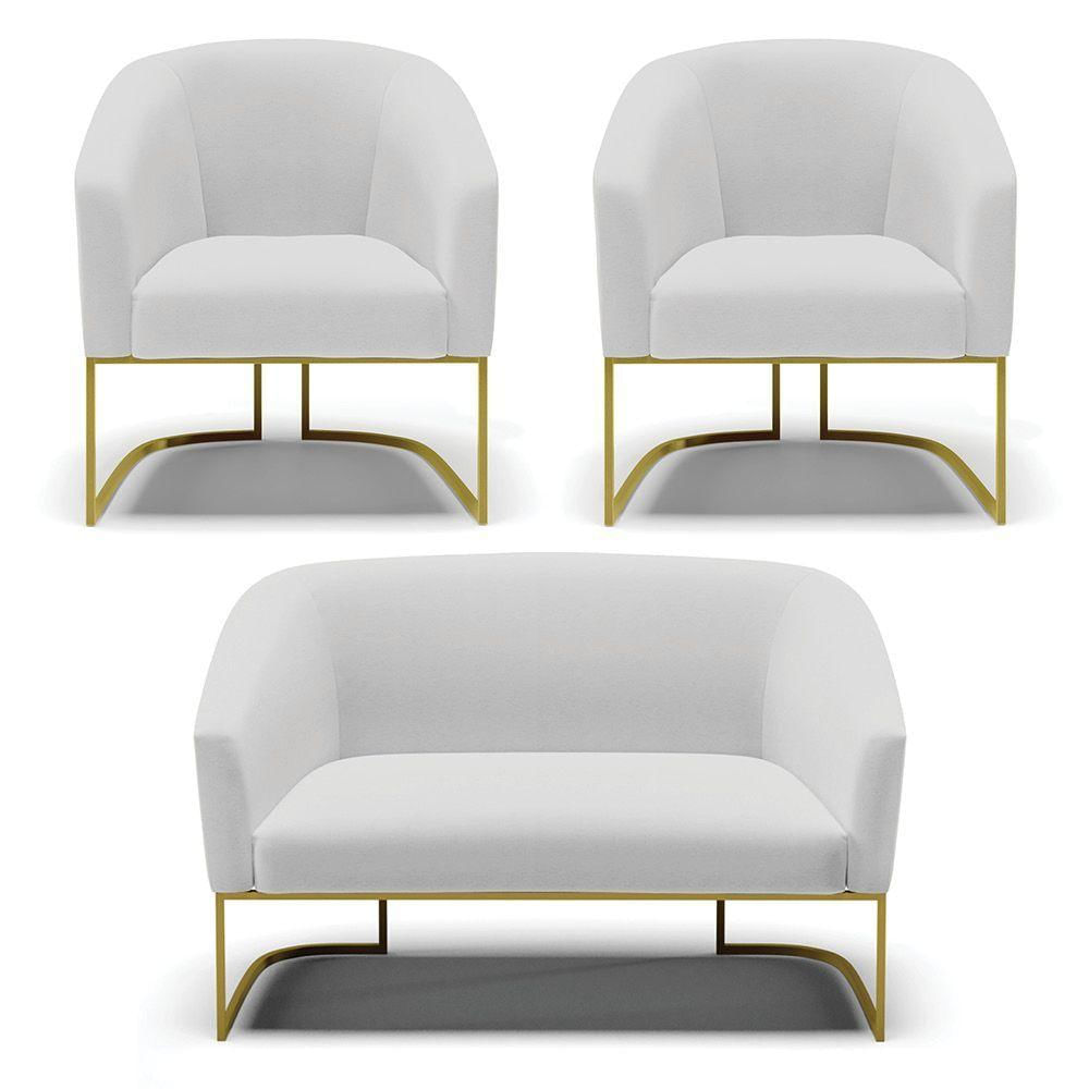 Namoradeira E 2 Poltronas Base Industrial Dourado Stella Linho Cinza A05 D03 - D'rossi