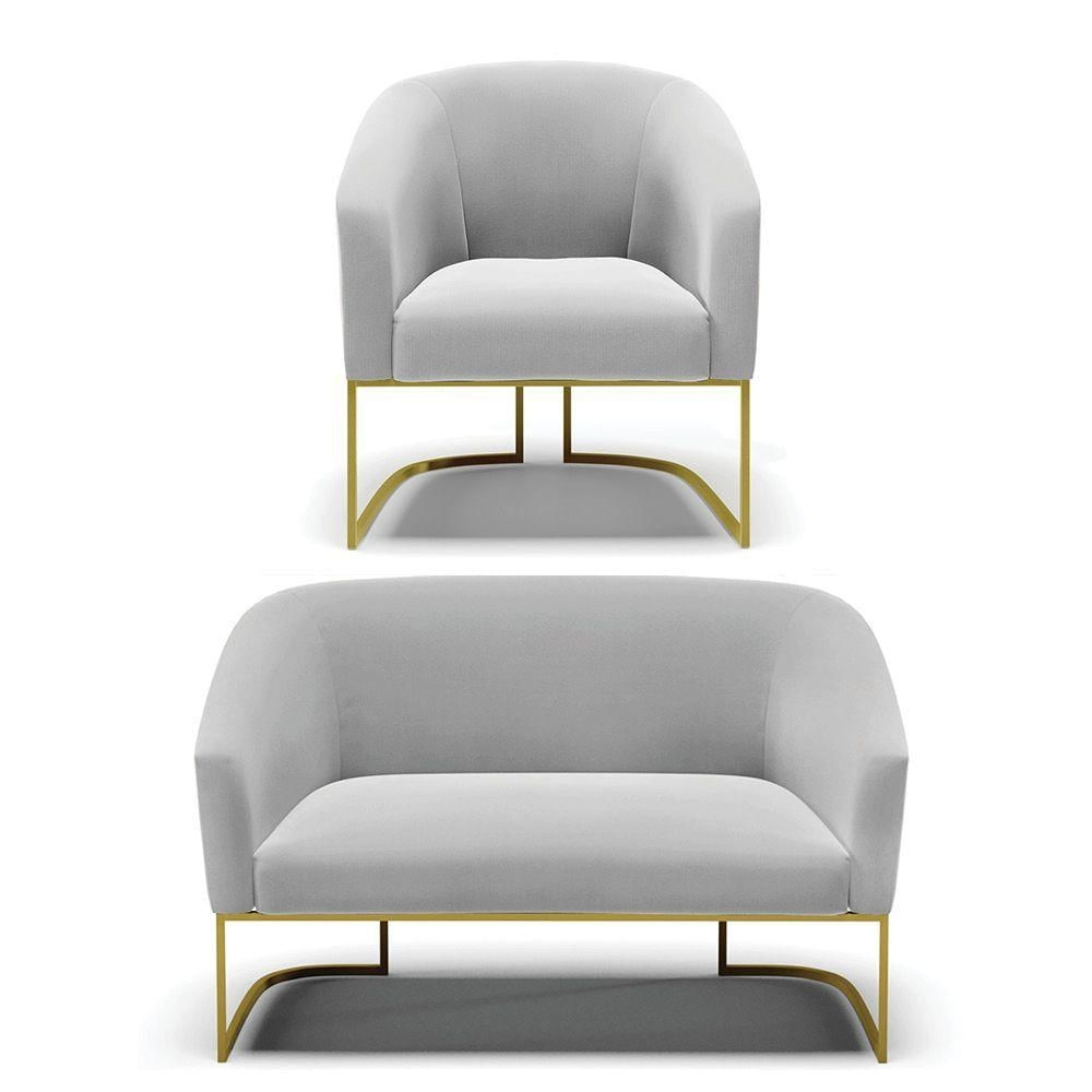 Namoradeira E Poltrona Base Industrial Dourado Stella Suede D03 - D'rossi Cor Cinza