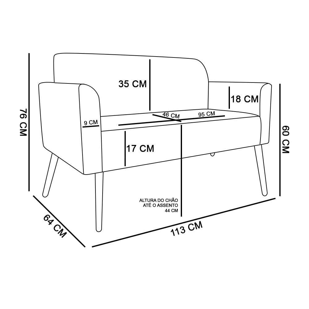 Perfeita para acomodar casais, a Namoradeira Marisa é muito confortável e possui ótima qualidade. Na sua estrutura é usada madeira reforçada de eucalipto proveniente de reflorestamento, no acento e encosto a espuma prorelax D-23 e por fim é revestido com o lindo tecido Suede e sua base é feita utilizando pés palito. Além de charmosa, a Namoradeira Marisa será perfeita para compor o hall de entrada, a sala de espera, sala de estar e demais cômodos que preferir. Se acomode da melhor maneira possível com a Namoradeira Marisa! Dimensões da Namoradeira Altura total: 76 cm Largura total: 113 cm Profundidade total: 64 cm Altura do encosto: 35 cm Largura do assento: 95 cm Profundidade do assento: 46 cm Altura do chão ao assento: 44 cm Espessura do assento: 17 cm Altura da Base: 30 cm Altura do chão ao braço: 60 cm Altura interna do braço: 18 cm Espessura do braço: 9 cm Peso: 20 kg Especificações do Produto Estrutura: Madeira Eucalipto Espuma: Prorelax D-23 Tecido: Suede (100% Poliéster) Tipo de pés: Pés Palito Castanho Peso Suportado: Até 240 Kg Garantia: 90 dias contra defeito de fabricação Montagem: O produto vai montado Instruções de Limpeza: Utilizar um pano limpo e levemente úmido Você irá receber: 01 volume com 01 produto Observações Relevantes - Todos os produtos vão embalados com total segurança; - As cores dos produtos podem sofrer alterações dependendo do seu monitor; - Para futuras compras, não garantimos a mesma tonalidade de cor, pois existe variação a cada lote do fabricante do tecido; - As imagens são meramente ilustrativas, não acompanham objetos de decoração e eletros; - Confira as dimensões do produto no momento da compra e certifique-se de que passará normalmente por escadas, elevadores, portas e corredores; - Importante: Por se tratar de estofado as medidas podem ter uma pequena variação em até 3 cm; - Não nos responsabilizamos no ato da entrega por montagens, desmontagens, instalações de produtos; - Não nos responsabilizamos no ato da entrega por subir escadas, elevadores, nem utilização de guinchos ou equipamentos similares para acesso a pisos superiores em apartamentos; - A entrega do produto é realizada em todo território nacional, até onde as rodovias alcançam, entregas fluviais ou aéreas devem ser cotadas a parte; - Observando as orientações acima, evita-se futuros desagrados ou imprevistos com a entrega do produto. Havendo despesas adicionais, serão de responsabilidade do cliente;