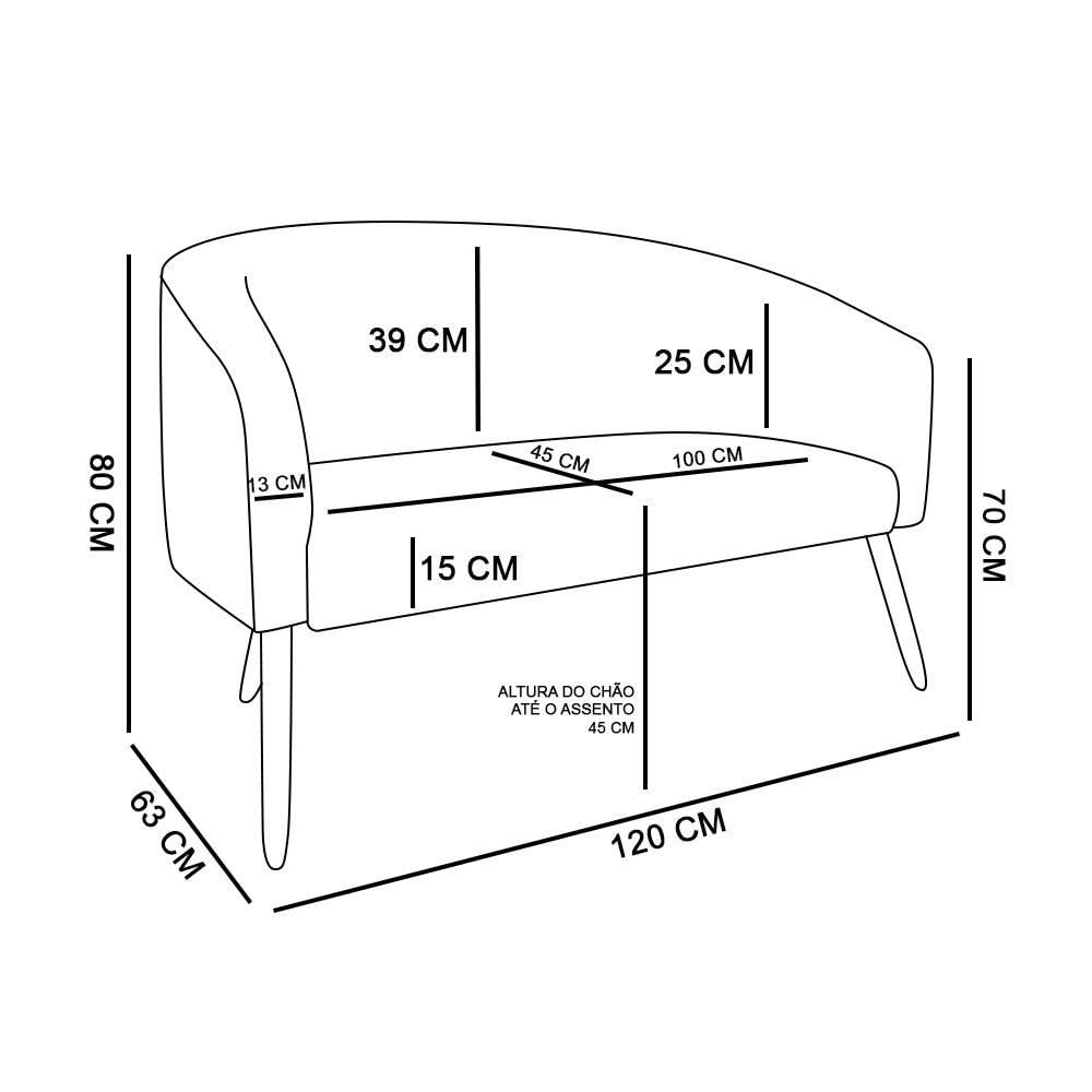Namoradeira Stella Suede Preto Pés Palito Castanho D'Rossi As Namoradeiras são muito adaptáveis aos ambientes, seja na sala ou hall de entrada e até em áreas de jardim. Seja interno,OQue é mais comum, ou externo será a sua preferência para adequar este móvel da melhor maneira possível. Portanto apresentamos a Namoradeira Stella, estruturada em MDFReforçado, no seu encosto e assento fixos utiliza-se a espuma Prorelax D-23 e por fim é revestido noMaravilhoso Tecido Suede. A Namoradeira StellaTraz consigoUm toque de delicadeza no formato arredondado de seu encosto, mantendo sempre conforto e ótima qualidadePara o local. Aproveite esta oportunidade de possuir uma linda Stella em casa! Dimensões da Namoradeira Altura total: 80 Cm Largura total:1,20 Cm Profundidade total: 63 Cm Altura do encosto: 39 Cm Largura do assento: 100 Cm Profundidade do assento: 45 Cm Altura do chão ao assento: 45 Cm Espessura do assento: 15Marca :DROSSI -Referência :46712 Garantia :90 Dias após o recebimento do produto