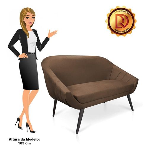 Namoradeira Giovana 02 Lugares Suede Marrom Pés Palito De Ferro - D'rossi