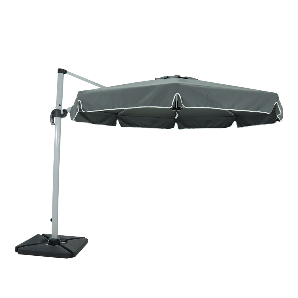 Ombrellone Suspenso Articulado Giratório Sicília 3 metros Cinza + Base em ABS 50 Litros Preta Bel 3,00m