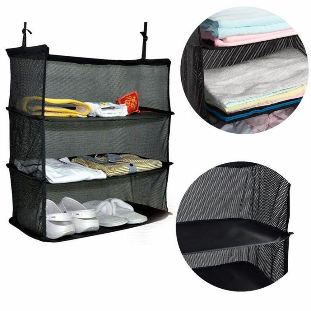 Organizador De Mala Bagagem Roupas Suspenso 3 Andares Prateleira De Viagem Bolsa Sacola Gancho Cabide De Bolsa Dobravel