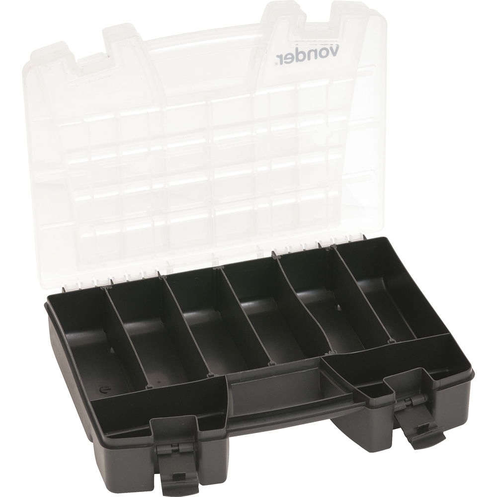 Comprimento do organizador para ferramentas: 380,0 mm Largura do organizador para ferramentas: 285,0 mm Altura do organizador para ferramentas: 95,0 mm Material do organizador para ferramentas: Polipropileno Cor do organizador para ferramentas: Preto com abas transparentes Capacidade de carga: 15 kg