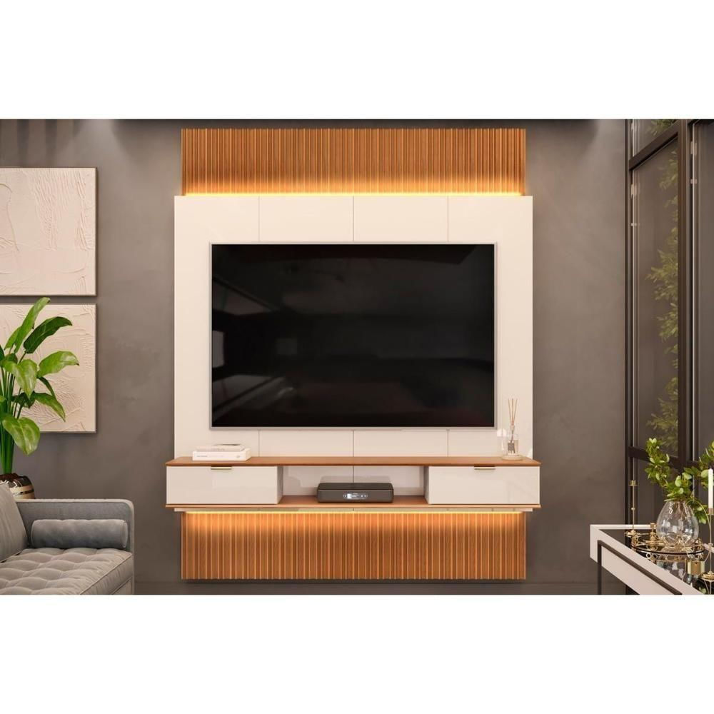 Painel Home p/ TV até 75 Polegadas Hit 1900 Extensível 100% MDF c/ Led de 240 a 290cm Freijó/Off White - DJ Móveis Marca: DJ Móveis