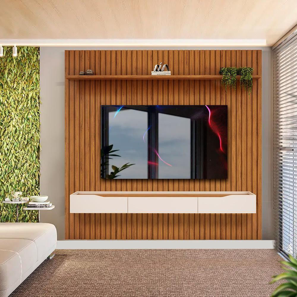 Painel Moderno Com Bancada Suspensa Até 75 Polegadas 250cm X 240cm Freijó Off White Atlantis Jm M