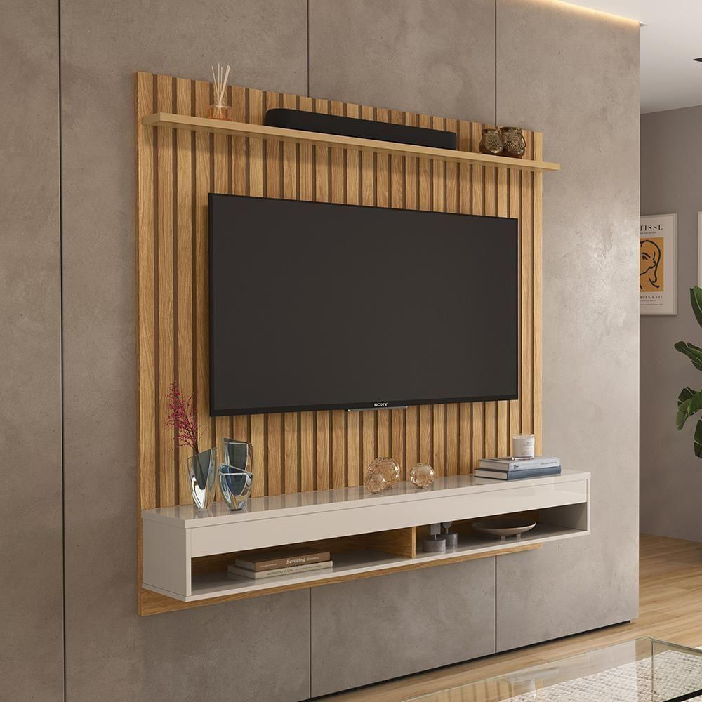 Painel Para Detroit - 1 Prateleira E Nicho Suspenso Freijó-off White - Lukaliam Móveis