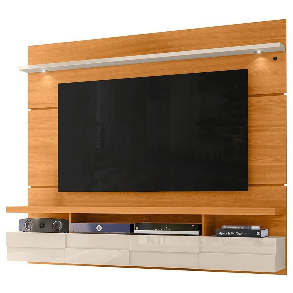 Painel Para Tv 60 Pol Com Bancada Suspensa E Led 182cm Lina M07 Cinamomo Off White - Lyam Decor