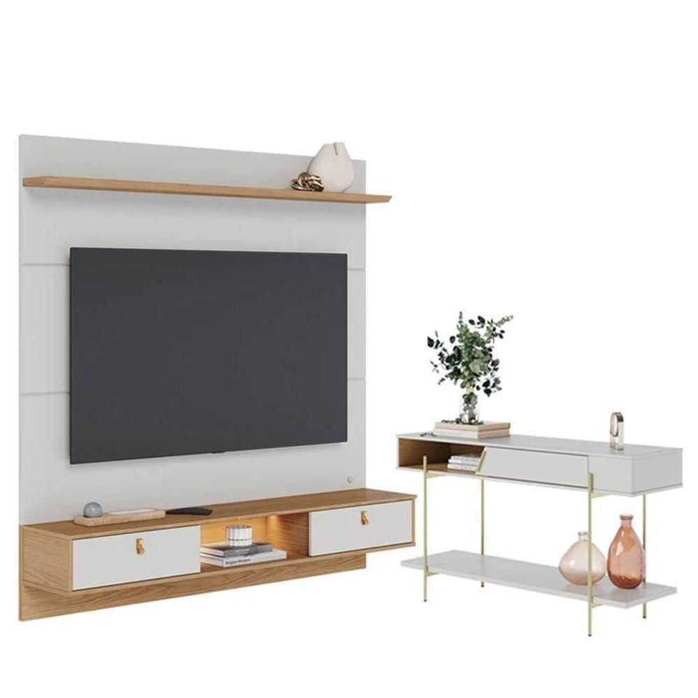 Painel Para Tv Home Suspenso Bali 1.6 Com Aparador Para Sala Sena Off White Matte Freijó – Colibri