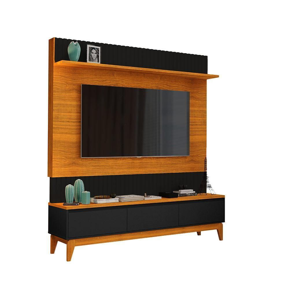 Painel Ripado Com Prateleira Para Tv De Até 75 Polegadas Freijó Preto Coel Shop