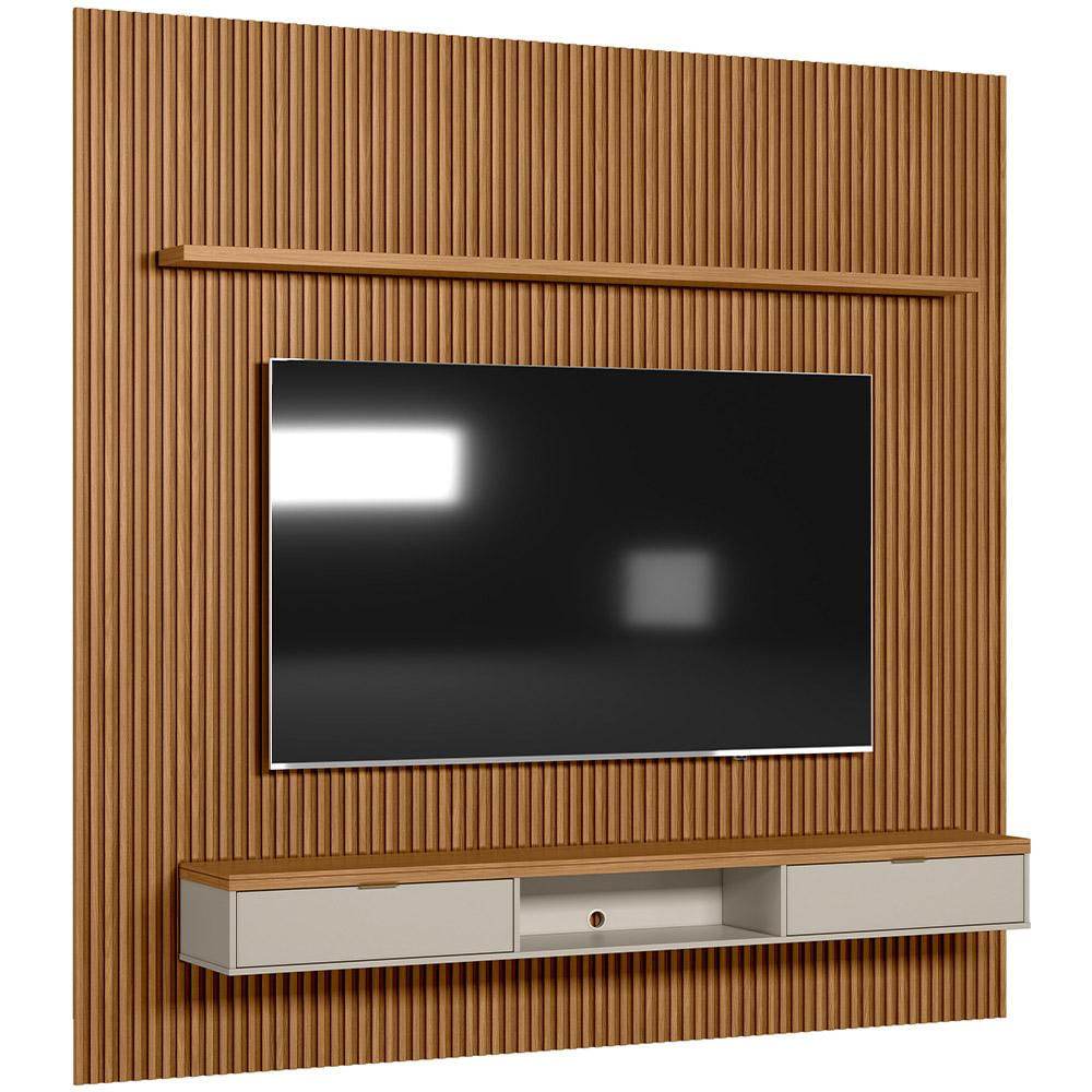 O painel ripado é uma tendência de decoração que pode transformar completamente qualquer ambiente. Melhor ainda quando combinado com uma bancada suspensa e prateleira para adicionar muito mais funcionalidade, assim como o Painel Ripado Para TV 75 Pol Slats e Bancada Lisa 258x250cm L05 Nature Off White, da Lyam Decor.